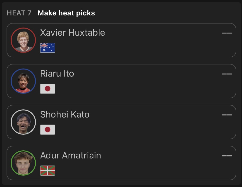 五十嵐カノア、安室丈、西慶司郎、大原洋人の4名の日本人選手がこのラウンドオブ64で敗退となってしまった。