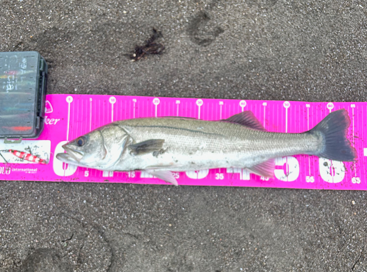朝一雨の中🎣厳しいコンデションの中、シーバスがヒットしてくれた。