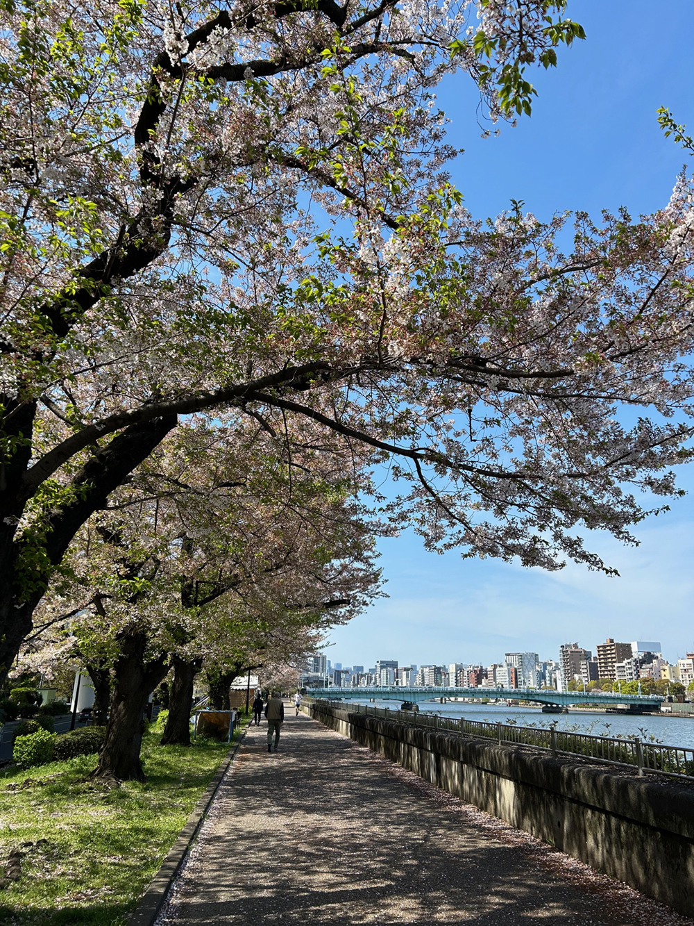 散歩コースの隅田川沿いの桜もほぼ散ってしまい葉桜状態に。