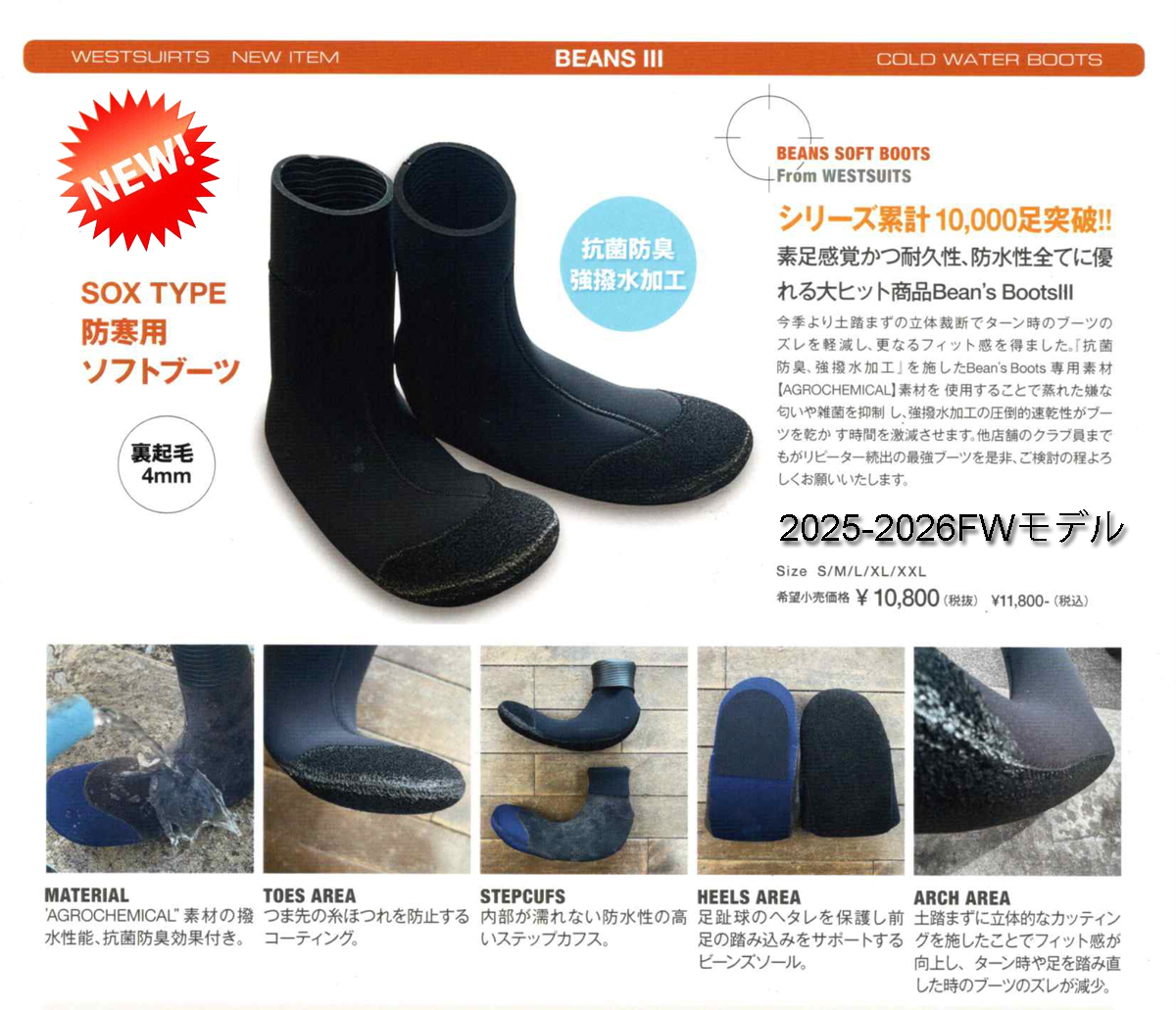WEST SUITS工場のウエットスーツ職人により作り出すBEANS SOFT BOOTS 4mmソフトブーツ