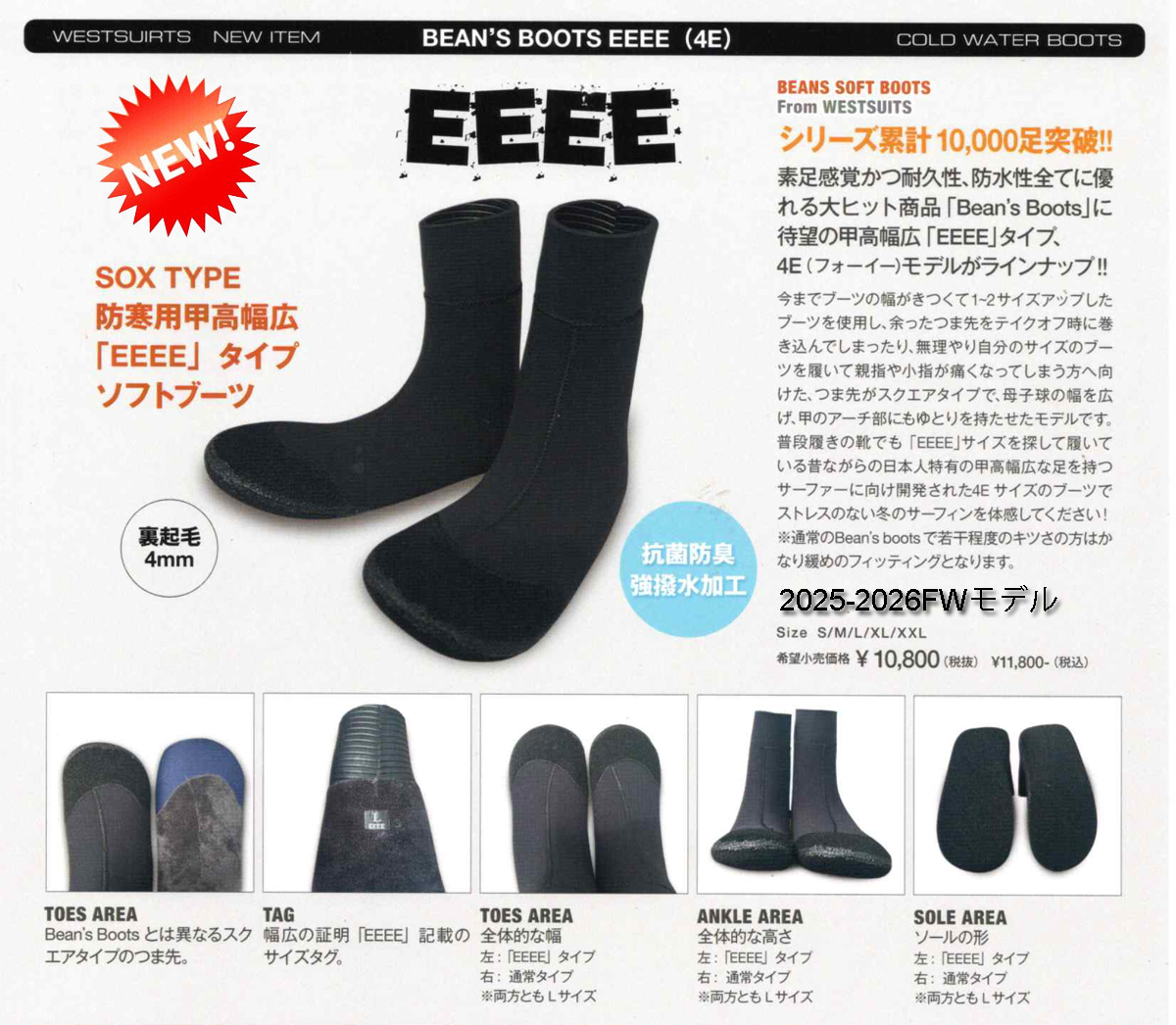 日本人特有の甲高幅広な足を持つサーファー向けに開発された4Eサイズブーツもあります!