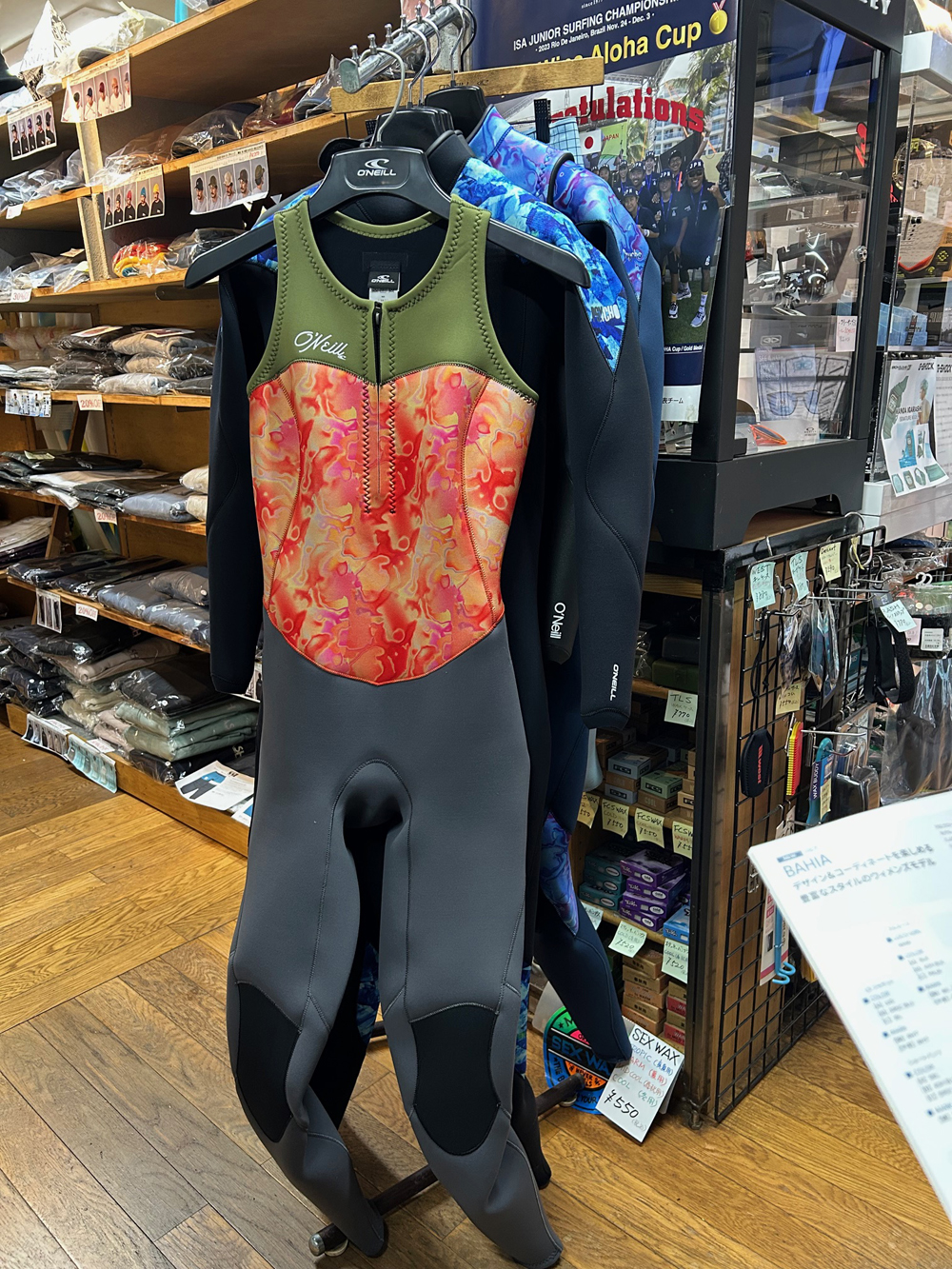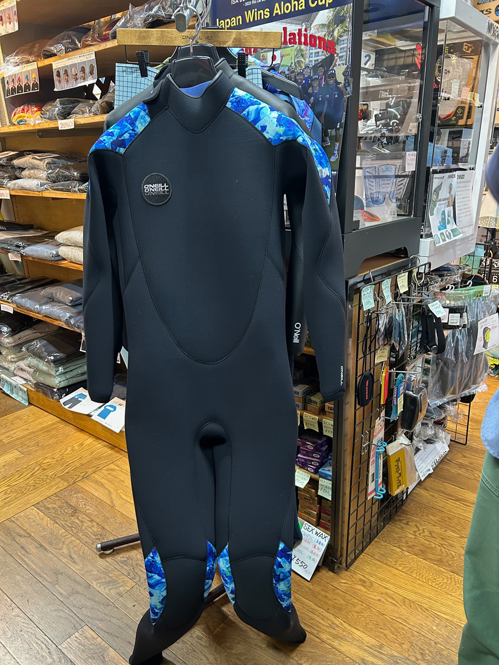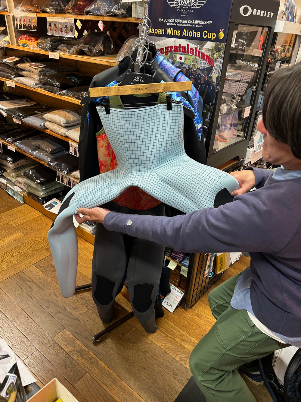 O’NEILL 2026Spring & Summer新作の説明に営業の山崎くんが来店。