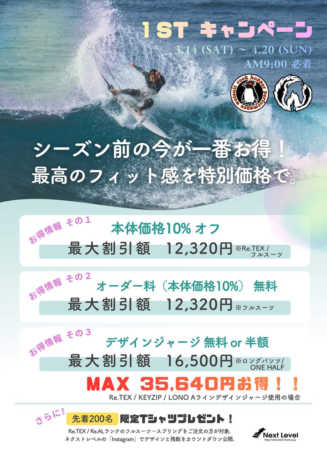 ROOKHOPPER & WEVE WARRIORSウエットスーツ2026 Sprinng & Summer最新カタログ届きました。 1stキャンペーン開催中です。