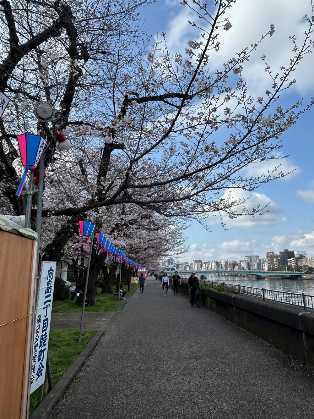 散歩コースの隅田川沿いの桜並木は6分咲きぐらいか?