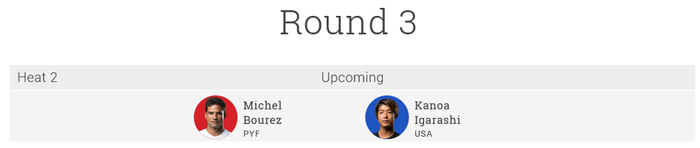 ラウンド1は3位振るわなかったカノア五十嵐だったがラウンド2でマーガレットリバーの覇者シーバスを破りラウンド3にUP!