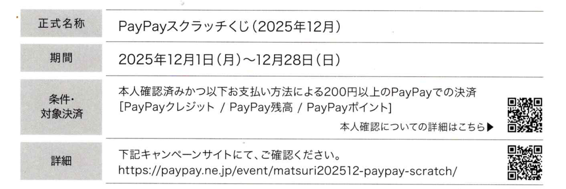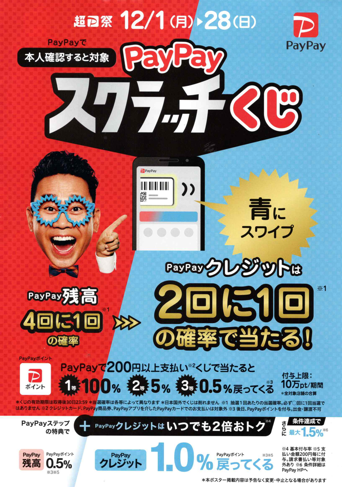 お得なPayPayスクラッチくじ本日12/1スタート!